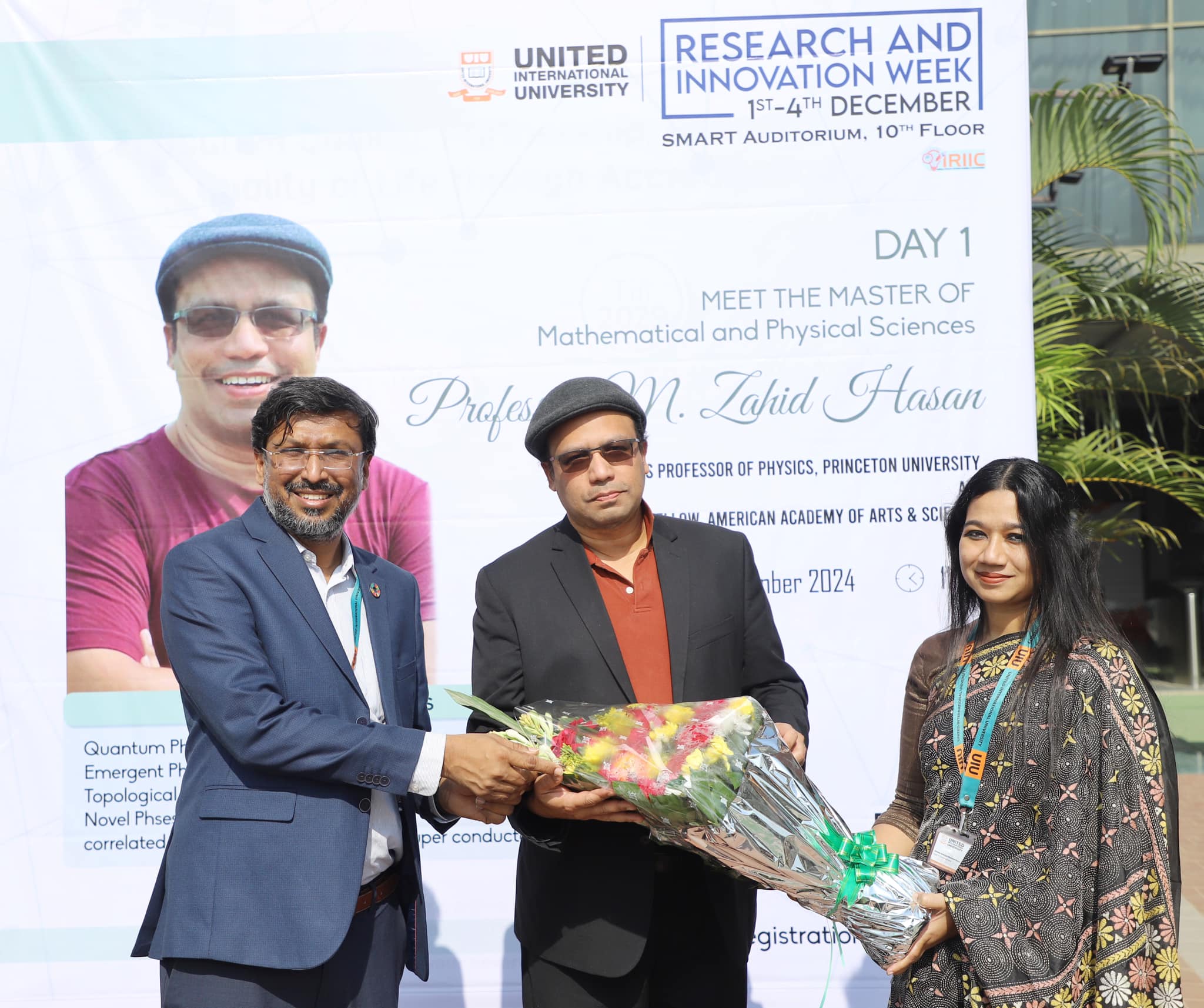 Professor Dr Abul Kashem Mia, Vice Chancellor of UIU presided over the ceremony. Prof. M. Zahid Hasan – Eugene Higgins, Professor of Physics at Princeton University and Fellow of the American Academy of Arts and Sciences, was the programme’s special guest. While, Professor Emeritus Dr M Rezwan Khan, Executive Director of IAR, UIU and Chairman of Power Grid, Bangladesh; Professor Dr. Hamidul Haq, Dean, School of Humanities and Social Sciences, UIU, Professor Dr Hasan Sarwar, Dean, School of Science and Engineering, UIU and Dr. Zulfiqur Rahman, Registrar of UIU were present in the programme. The welcome address was delivered by Professor Dr Khandaker Abdullah Al Mamun, Director of the Institute of Research, Innovation, Incubation and Commercialization (IRIIC), UIU.